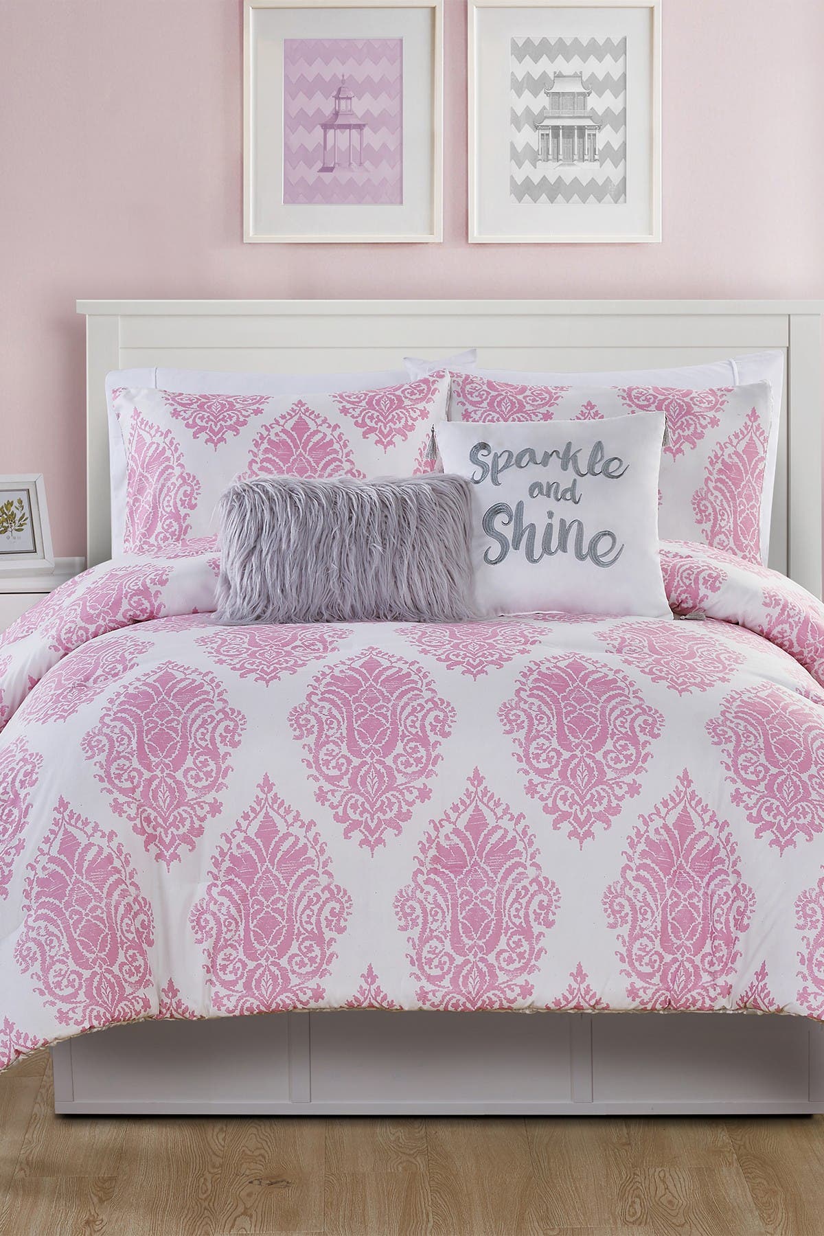 Pink Damask Bedding: The delicate purple and pink damask design is captivating and commands the attention of the.